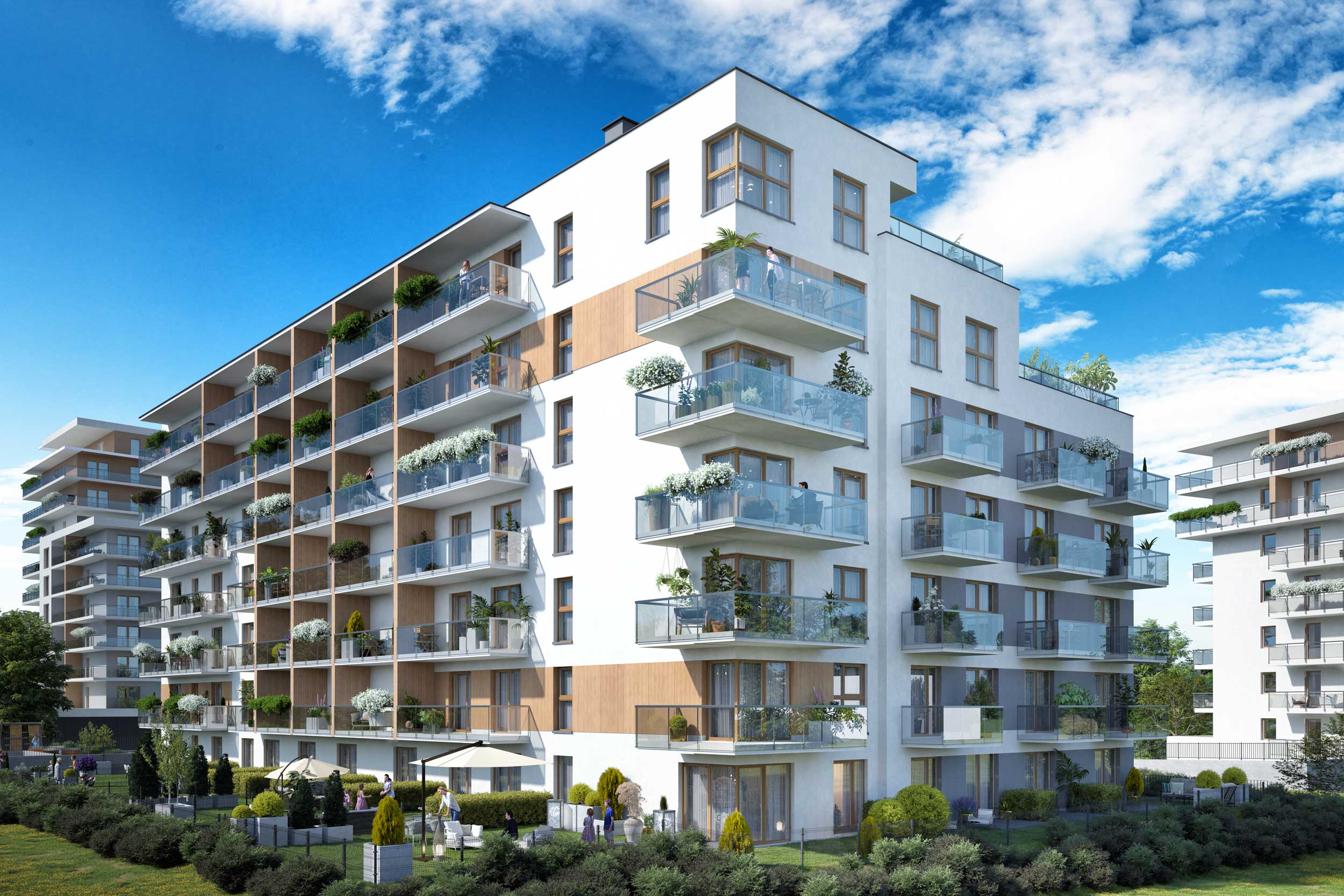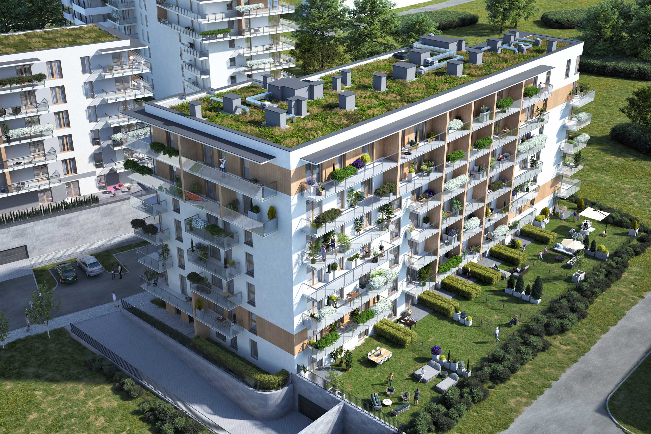 Nowoczesne rozwiązanie, dzięki któremu do niektórych mieszkań przynależy kawałek własnej zieleni. Takie lokale najlepiej sprawdzą się dla osób, które nie chcą inwestować w dom, ale zależy im na własnym ogrodzie.